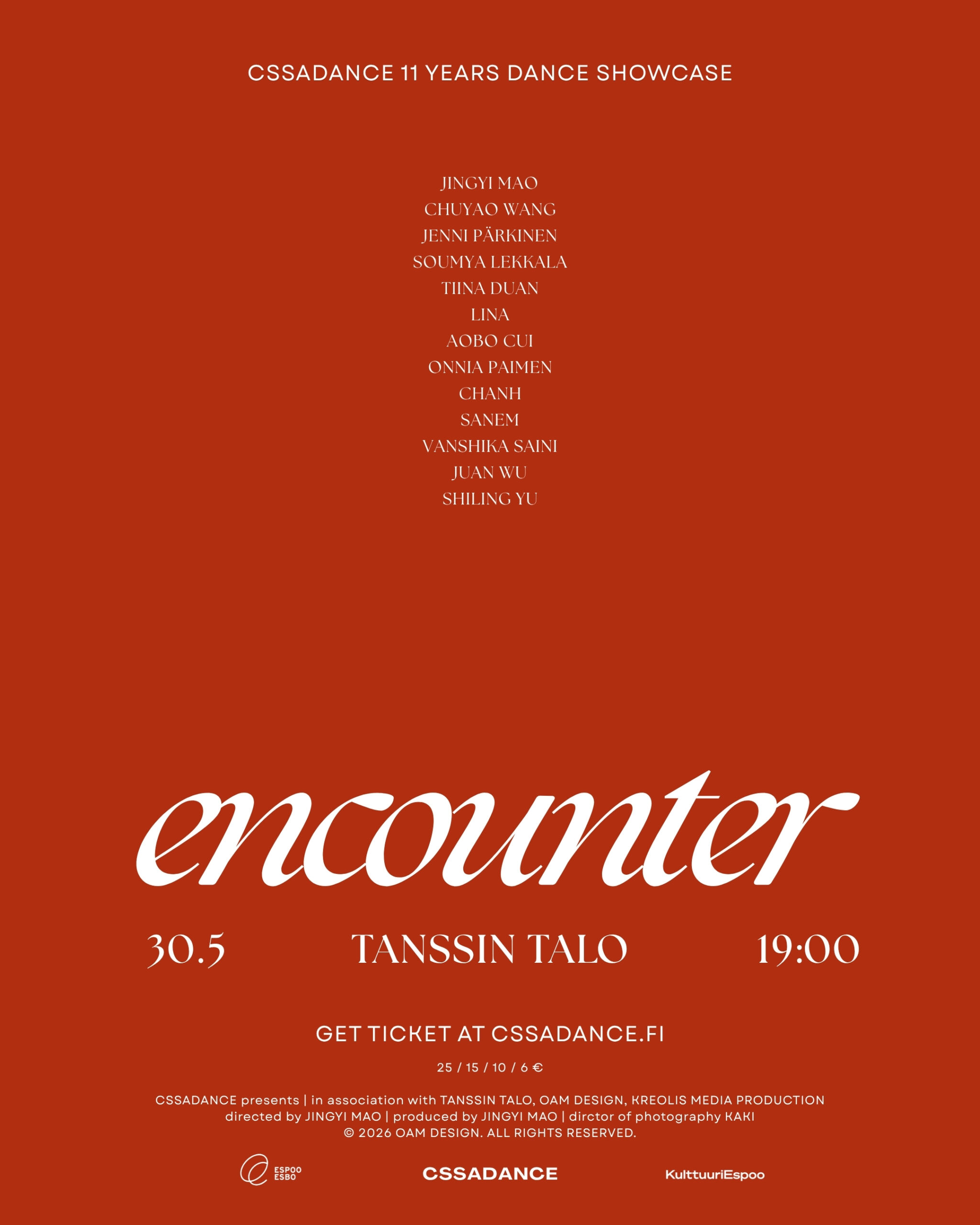 Celebrate a decade of rhythm, passion, and cultural expression with encounter – the come back full-length dance showcase by CSSADANCE, Finland’s pioneering Chinese student dance association at Aalto University.